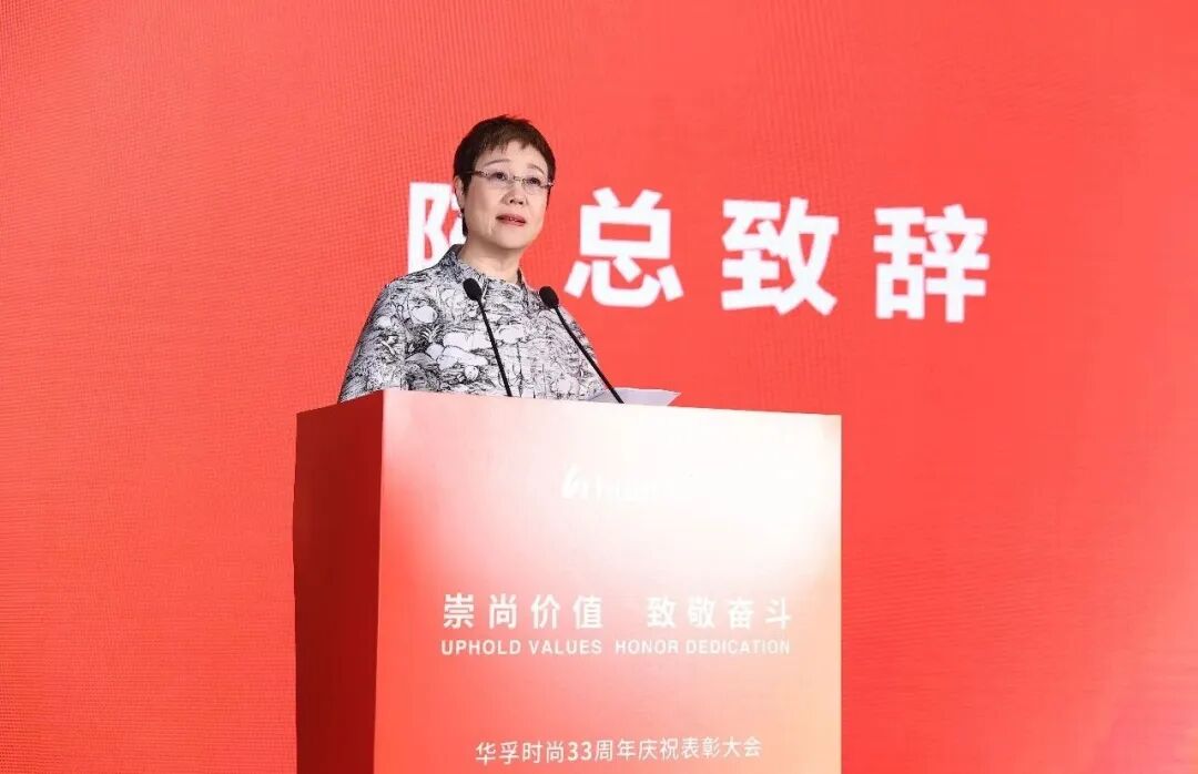 2026年4月13日,华孚时尚股份有限公司33周年庆祝表彰大会在上虞华尚数智中心2号楼秀场隆重举行。大会以“崇尚价值 致敬奋斗”为主题,华孚时尚董事长孙伟挺、总裁陈玲及公司领导班子、各级管理人员、员工代表齐聚一堂,共同回顾风雨兼程的奋斗路,致敬坚守同行的奋斗者,展望“更强健、更蓬勃”的新未来。本次大会采用“主会场+各地分会场线上直播观摩”的形式开展。