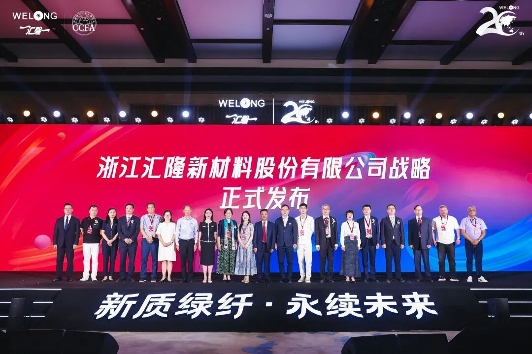 德清县人民政府副县长施敏丽在致辞时介绍,德清县位列全国综合实力、科技创新与绿色发展百强县前列,具有区位、产业、服务三大核心优势。她提到,一直以来,德清县委县政府鼓励引导企业积极引入新技术、新模式,推进技术改造升级、产品质量提升,加快向产业链中后端、价值链中高端迈进。今年围绕产业强县,德清迭代县域产业体系,配套优化产业空间布局,越来越多的传统企业正以此为导向加快转型升级。她希望汇隆新材等产业领军企业进一步抢抓机遇、加强合作,加大新产品研发、新技术转化力度,打造绿色企业典范。20年发展,汇隆新材一路成长壮大,从一家小规模的公司发展成为行业差别化有色涤纶长丝代表性企业,并于2021年成功登陆深圳证券交易所创业板,成绩斐然,“专精特新”特色凸显。站在20周年的节点,汇隆新材将走向何方?作为“排头兵”企业的汇隆又将引领行业走向何方?会上,公司董事长沈顺华发布了汇隆新材2025到2027年下一阶段战略规划。沈顺华表示:“20年来,汇隆一直不变的企业使命是倡导绿色环保,践行社会责任,在未来,我们依然会将其作为我们不变的企业使命。沈顺华表示,下一个战略周期,汇隆上下已经明确了以下7个大战略方向:即为绿色环保、汇隆国际化、产品扩展、产业升级、人才体系建设、不断提升的组织效率、卓越的质量。在七大战略的引领下,汇隆新材将继续扎根涤纶有色丝行业,向着绿色环保多色新材料的全球领袖持续奋进。